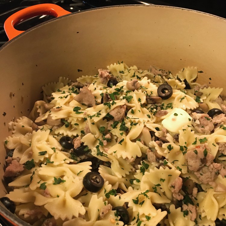 Garlicky Farfalle with Sausage and Mushrooms